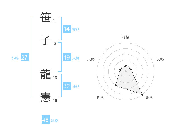 笹子 龍憲さんの天格は14画の1点!
