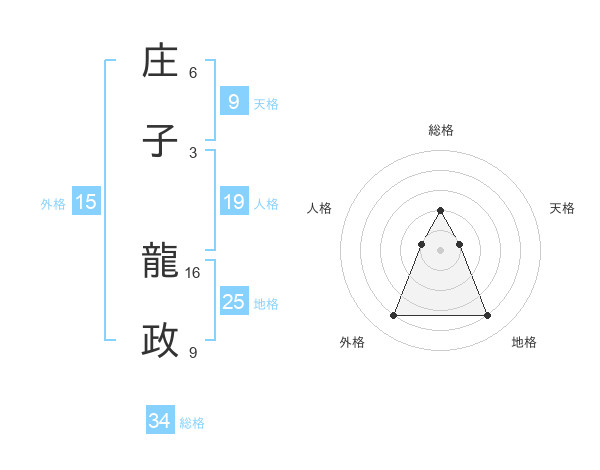 庄子 龍政さんを姓名の画数から五運を鑑定