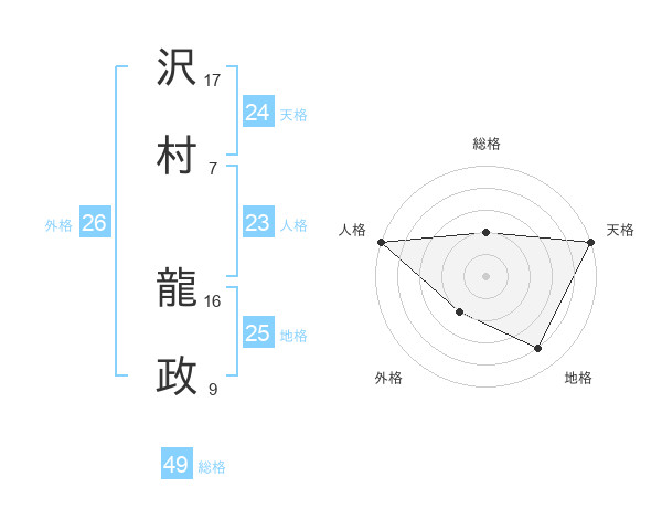 沢村 龍政さんの総格は49画の2点!