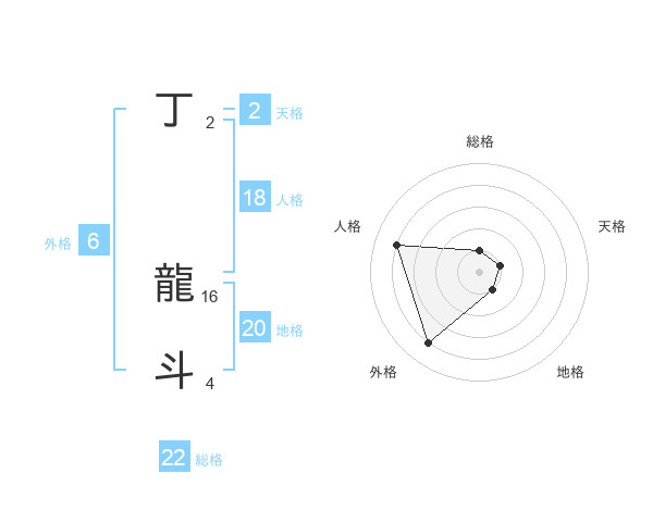 丁 龍斗さんの総格は22画の1点!