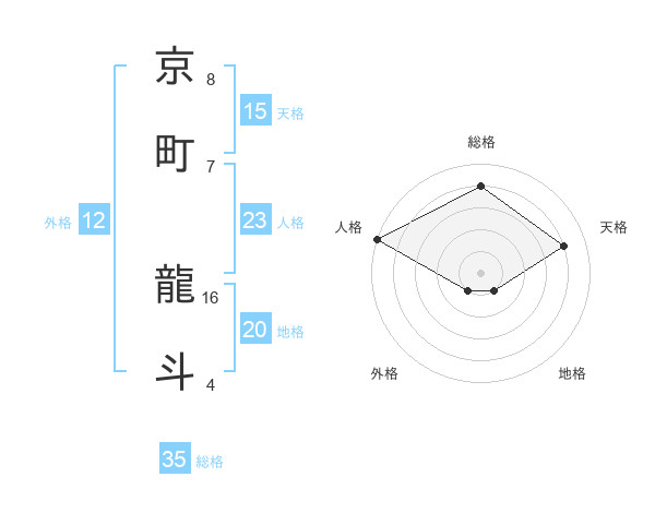 京町 龍斗さんの総格は35画の4点!