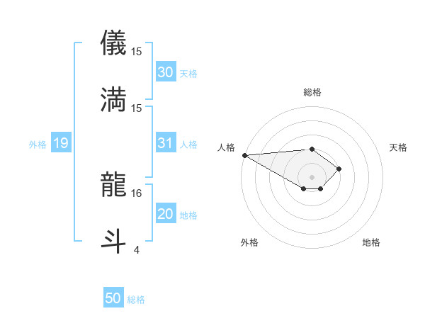 儀満 龍斗さんを姓名の画数から五運を鑑定