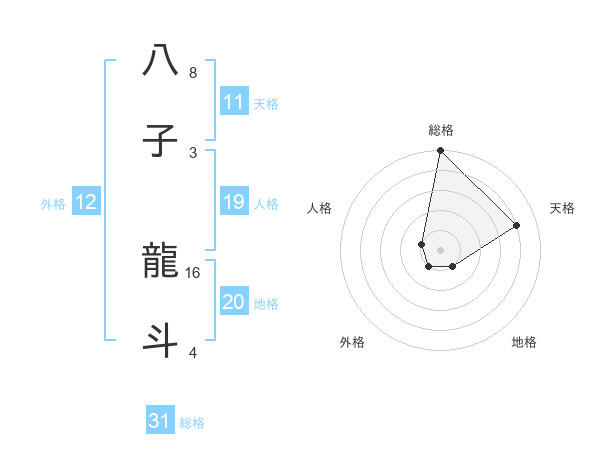 八子 龍斗さんの総格は31画の5点!