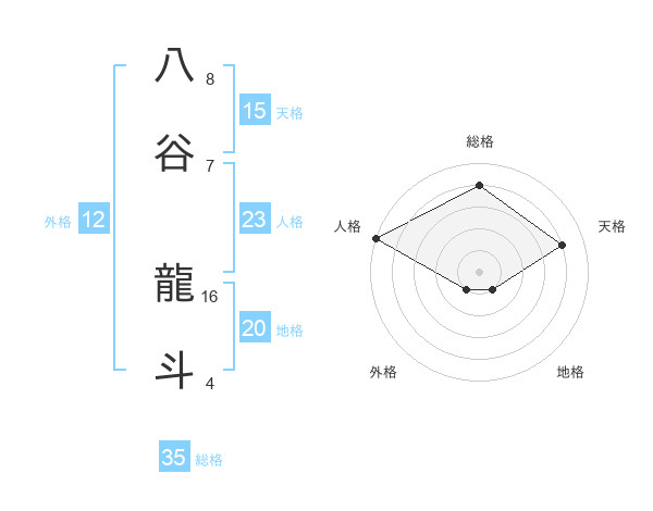八谷 龍斗さんを姓名の画数から五運を鑑定