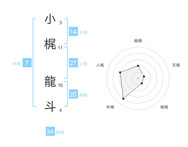 小梶 龍斗さんの天格は14画の1点!