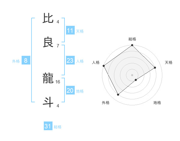 比良 龍斗さんの地格は20画の1点!