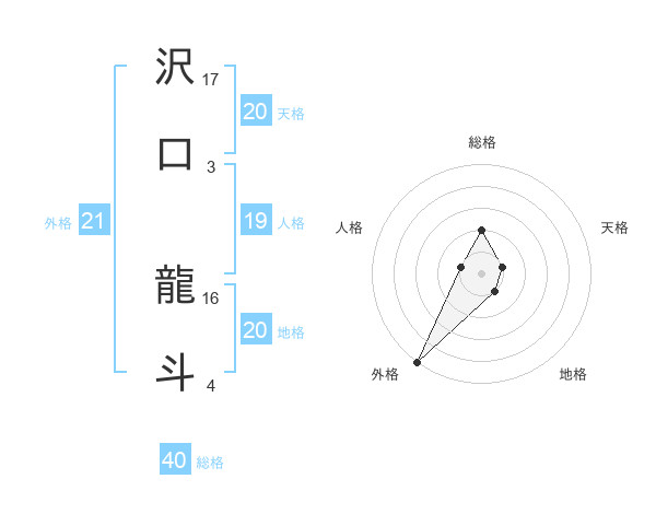 沢口 龍斗さんの外格は21画の5点!