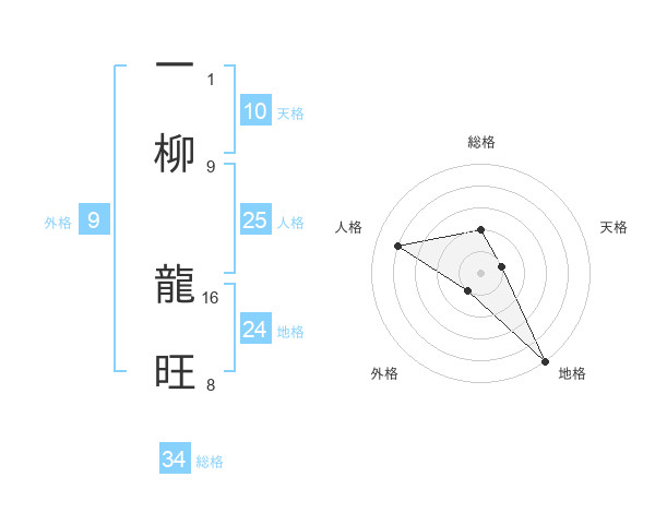 一柳 龍旺さんを姓名の画数から五運を鑑定
