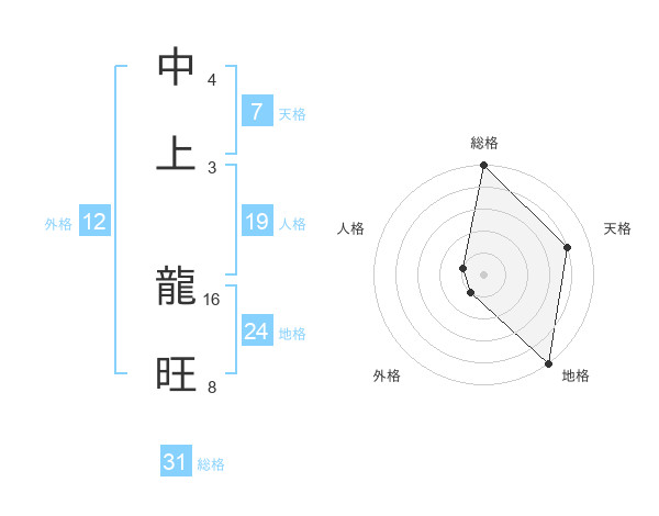中上 龍旺さんを姓名の画数から五運を鑑定