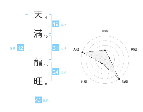 天満 龍旺さんを姓名の画数から五運を鑑定