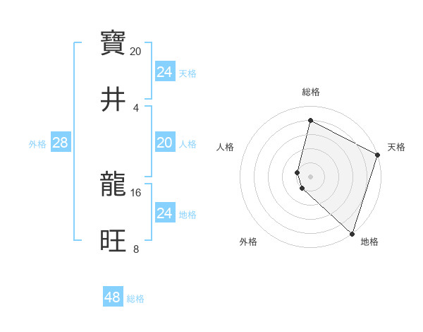 寶井 龍旺さんを姓名の画数から五運を鑑定