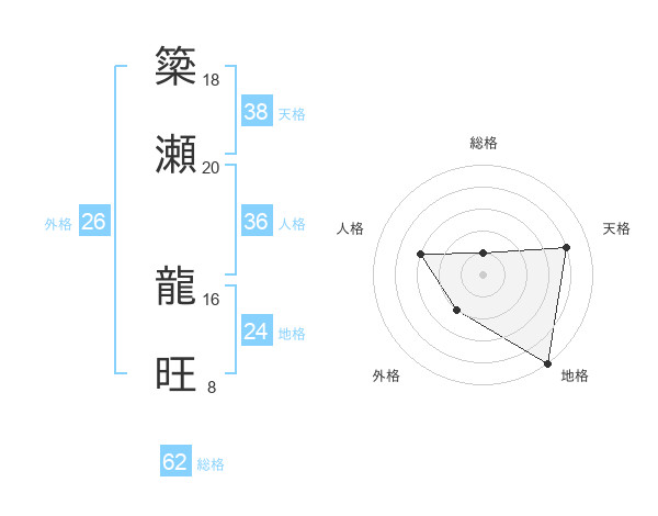 簗瀬 龍旺さんの天格は38画の4点!