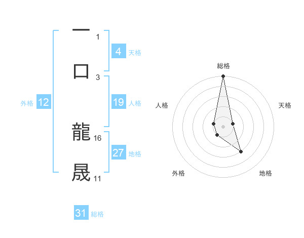 一口 龍晟さんの総格は31画の5点!