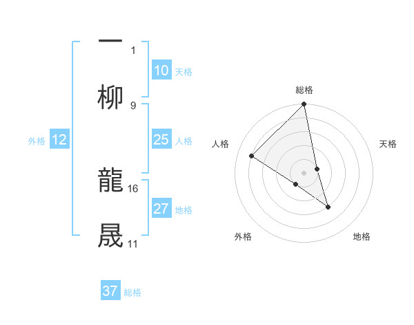 一柳 龍晟さんの総格は37画の5点!