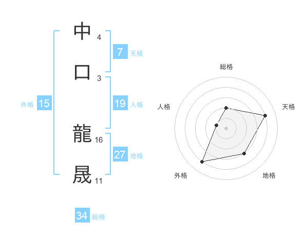 中口 龍晟さんの天格は7画の4点!