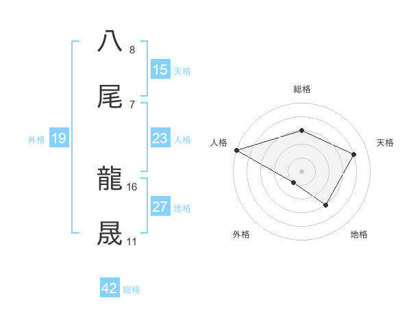 八尾 龍晟さんの総格は42画の3点!