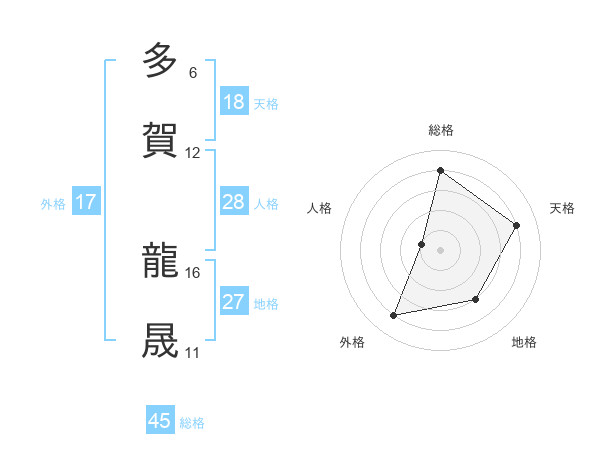 多賀 龍晟さんの総格は45画の4点!