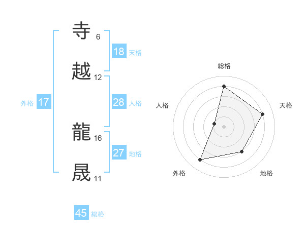寺越 龍晟さんの総格は45画の4点!
