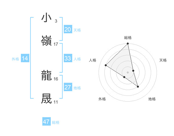 小嶺 龍晟さんの総格は47画の5点!
