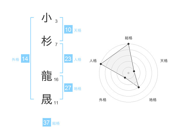 小杉 龍晟さんの総格は37画の5点!