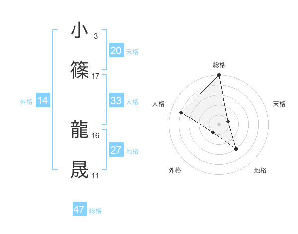 小篠 龍晟さんの総格は47画の5点!