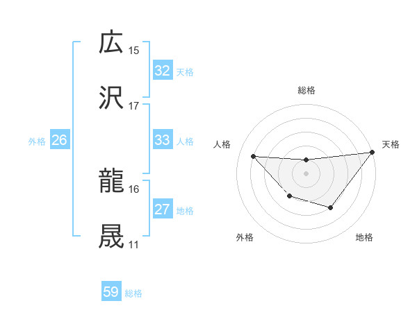 広沢 龍晟さんの天格は32画の5点!