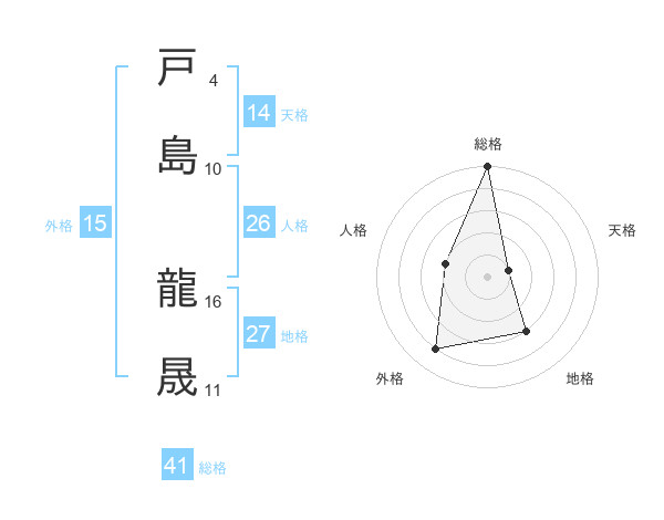 戸島 龍晟さんの総格は41画の5点!