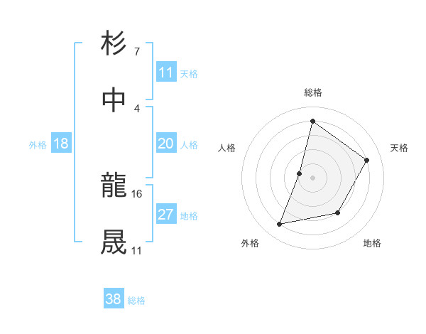 杉中 龍晟さんを姓名の画数から五運を鑑定