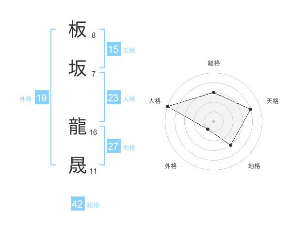 板坂 龍晟さんを姓名の画数から五運を鑑定