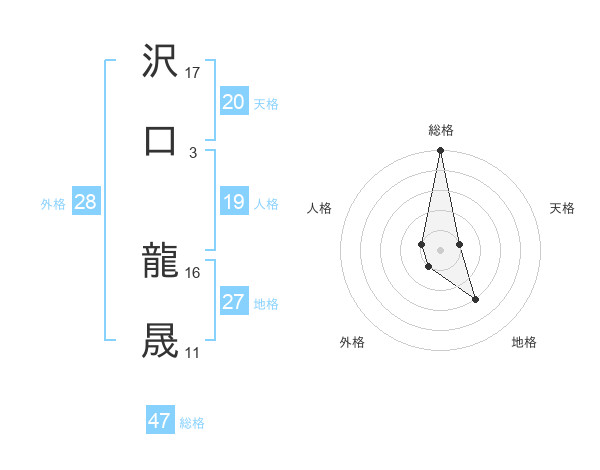 沢口 龍晟さんの総格は47画の5点!