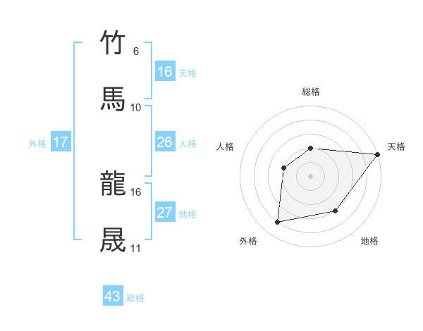 竹馬 龍晟さんの総格は43画の2点!