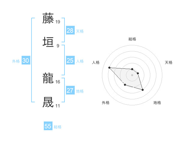 藤垣 龍晟さんを姓名の画数から五運を鑑定