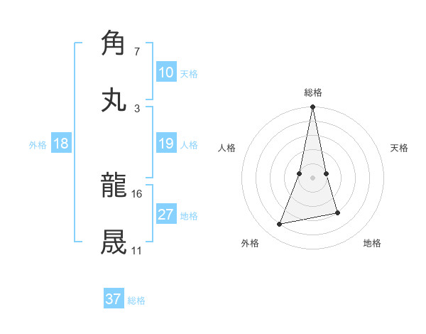 角丸 龍晟さんの総格は37画の5点!