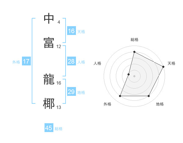 中富 龍椰さんの天格は16画の5点!