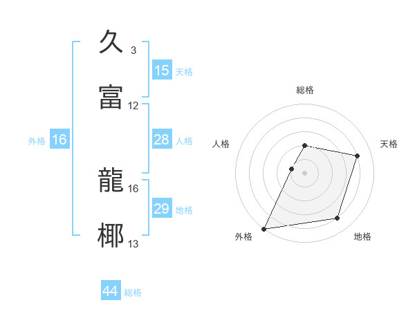 久富 龍椰さんを姓名の画数から五運を鑑定