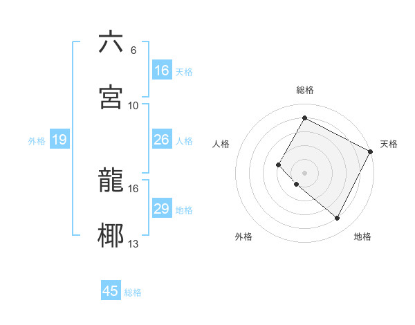 六宮 龍椰さんの総格は45画の4点!