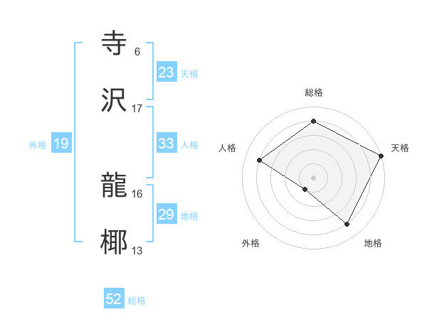 寺沢 龍椰さんの総格は52画の4点!