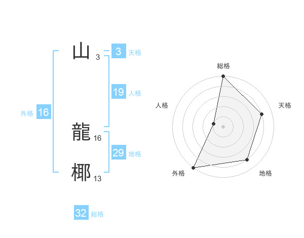 山 龍椰さんの総格は32画の5点!