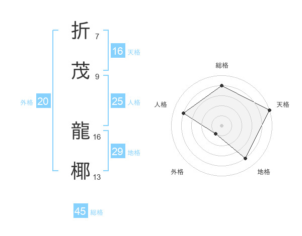 折茂 龍椰さんの総格は45画の4点!