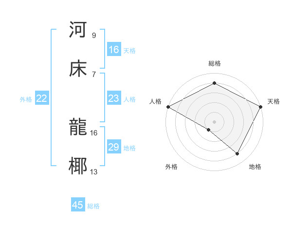 河床 龍椰さんの総格は45画の4点!