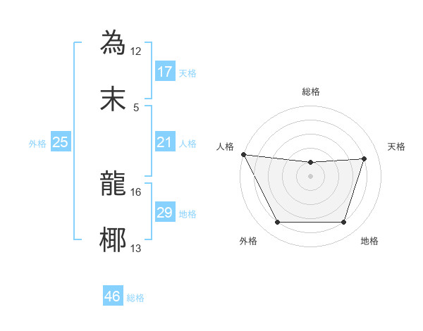 為末 龍椰さんの地格は29画の4点!