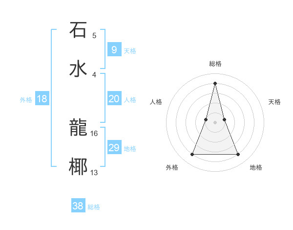 石水 龍椰さんの総格は38画の4点!
