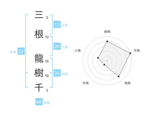 三根 龍樹千さんの天格は13画の5点!