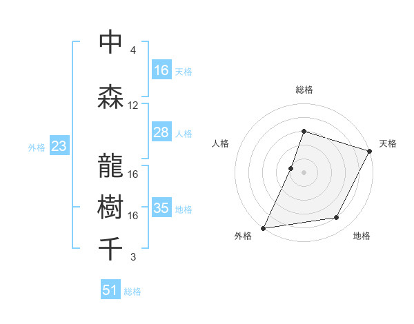 中森 龍樹千さんの総格は51画の3点!