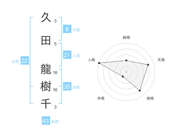久田 龍樹千さんを姓名の画数から五運を鑑定