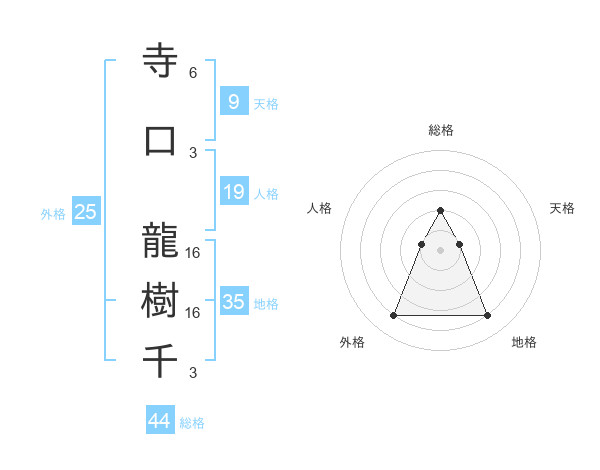 寺口 龍樹千さんの総格は44画の2点!