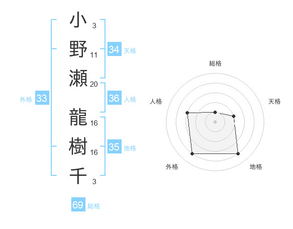 小野瀬 龍樹千さんを姓名の画数から五運を鑑定