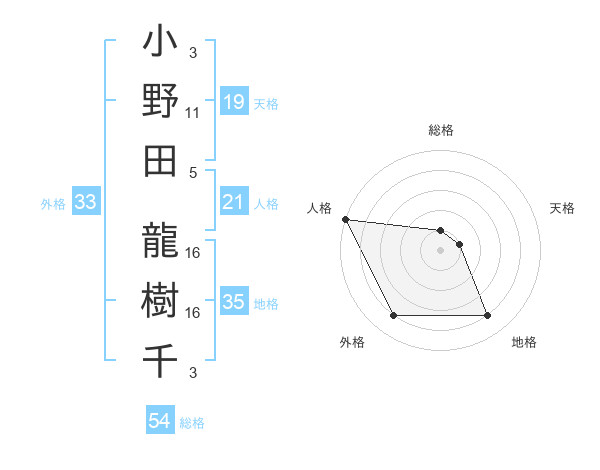 小野田 龍樹千さんを姓名の画数から五運を鑑定