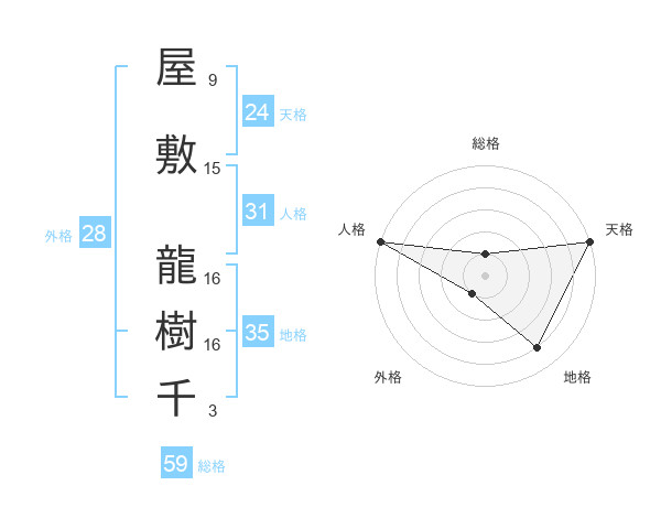 屋敷 龍樹千さんを姓名の画数から五運を鑑定
