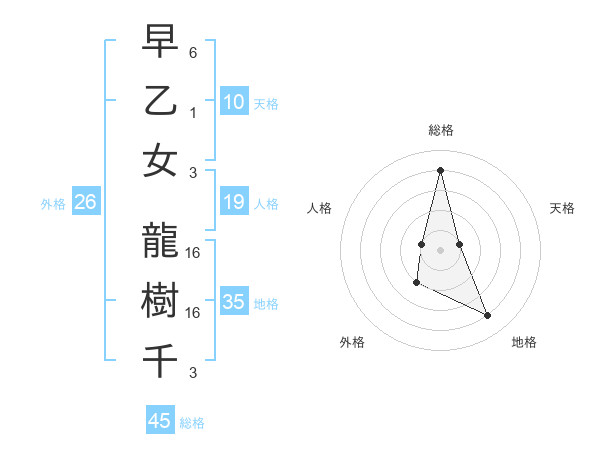 早乙女 龍樹千さんの総格は45画の4点